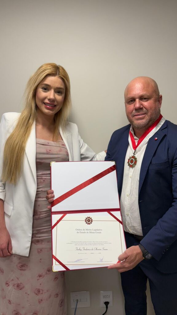 O agrônomo e agente político, Farley Frederico, foi agraciado com a Medalha do Mérito Legislativo da Assembleia de Minas Gerais, uma das mais importantes honrarias do Estado. A homenagem foi uma iniciativa da deputada Amanda Teixeira e reconhece a destacada contribuição de Farley para a sociedade mineira por meio de seus relevantes trabalhos prestados à nossa sociedade.